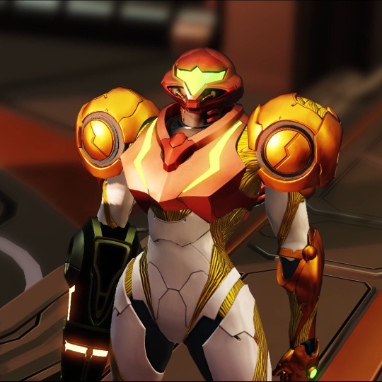 When You victoriously equip Samus, something resembling an orange version of her arm cannon appears on Your forearm like a vambrace as her iconic Equip SFX jingle plays. The vambracelikely resembles a metallic, sharply angled version of herself in slutsack-shape as if impaled all-the-way-through by Your fist.